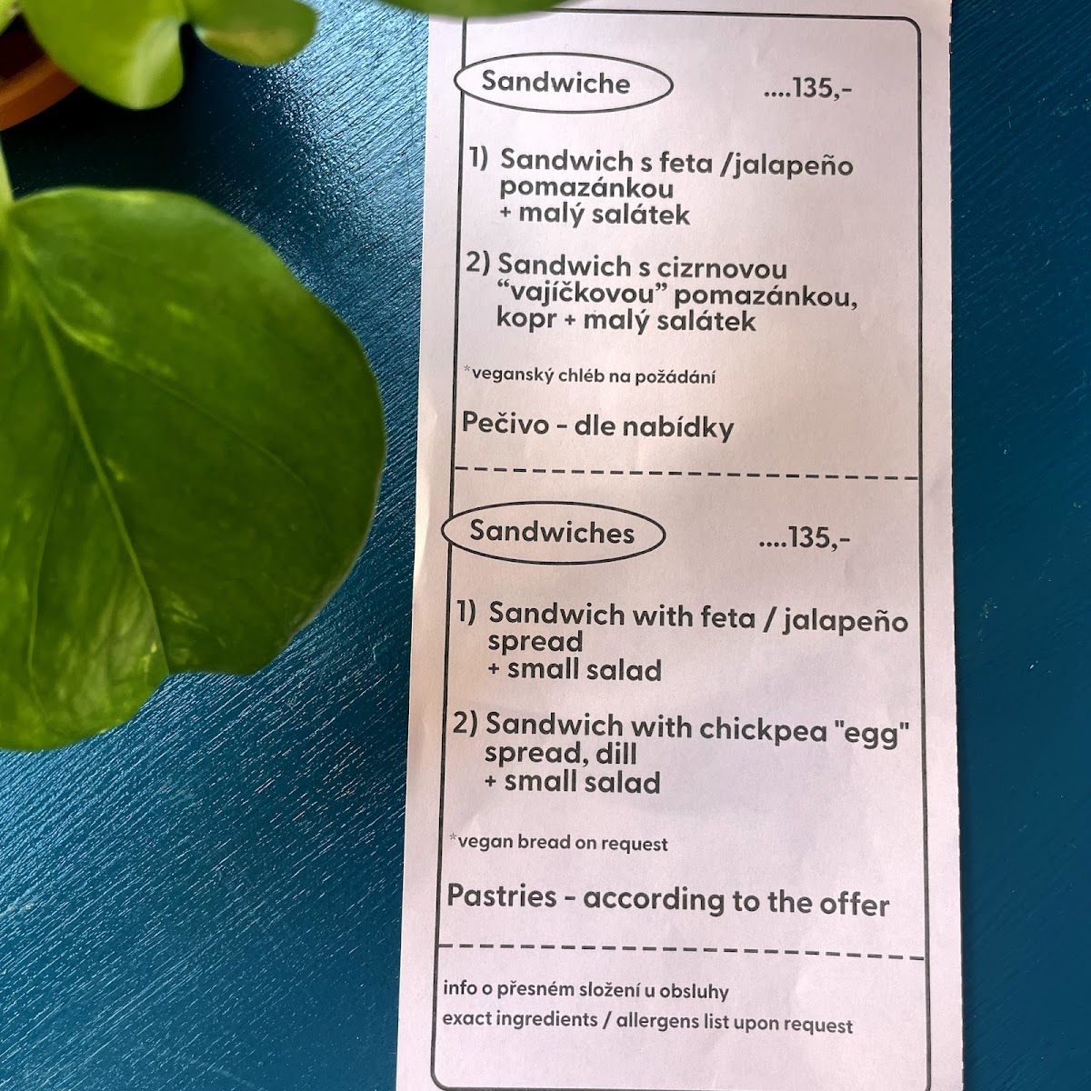 For those who crave a bit more indulgence, the drinks & shots menu does not disappoint. You might be tempted by the invigorating Gin & Tonic (CZK 140.00) or the sophisticated Espresso Martini (CZK 160.00), each crafted to elevate your ambience and enjoyment. And let's not forget the delightful array of vegan pastries that have earned rave reviews from customers like Tobias B., who appreciates both their taste and the cozy atmosphere perfect for casual meetings or productive working sessions.